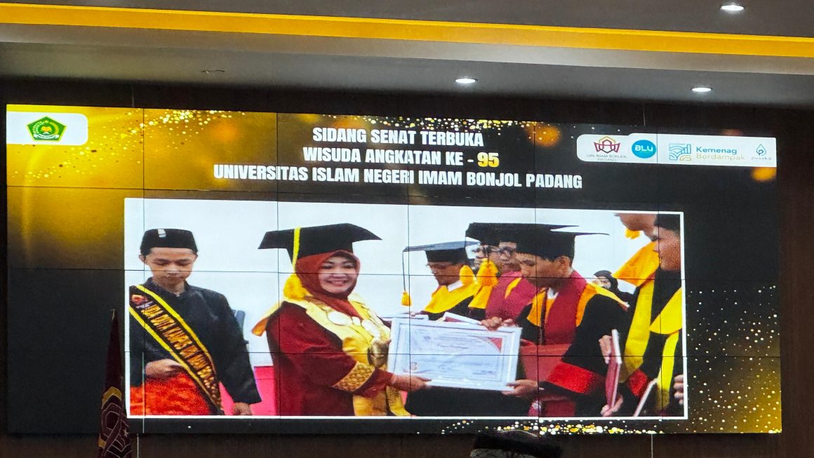 Suarakampus.com- Universitas Islam Negeri Imam Bonjol (UIN IB) Padang menggelar Wisuda ke-95 di Gedung J dengan mengukuhkan enam mahasiswa sebagai Bintang Aktivis Kampus, Sabtu (18/04). Mereka dinobatkan berkat kontribusi luar biasa dalam pengembangan kehidupan kampus, baik di bidang akademik maupun organisasi.