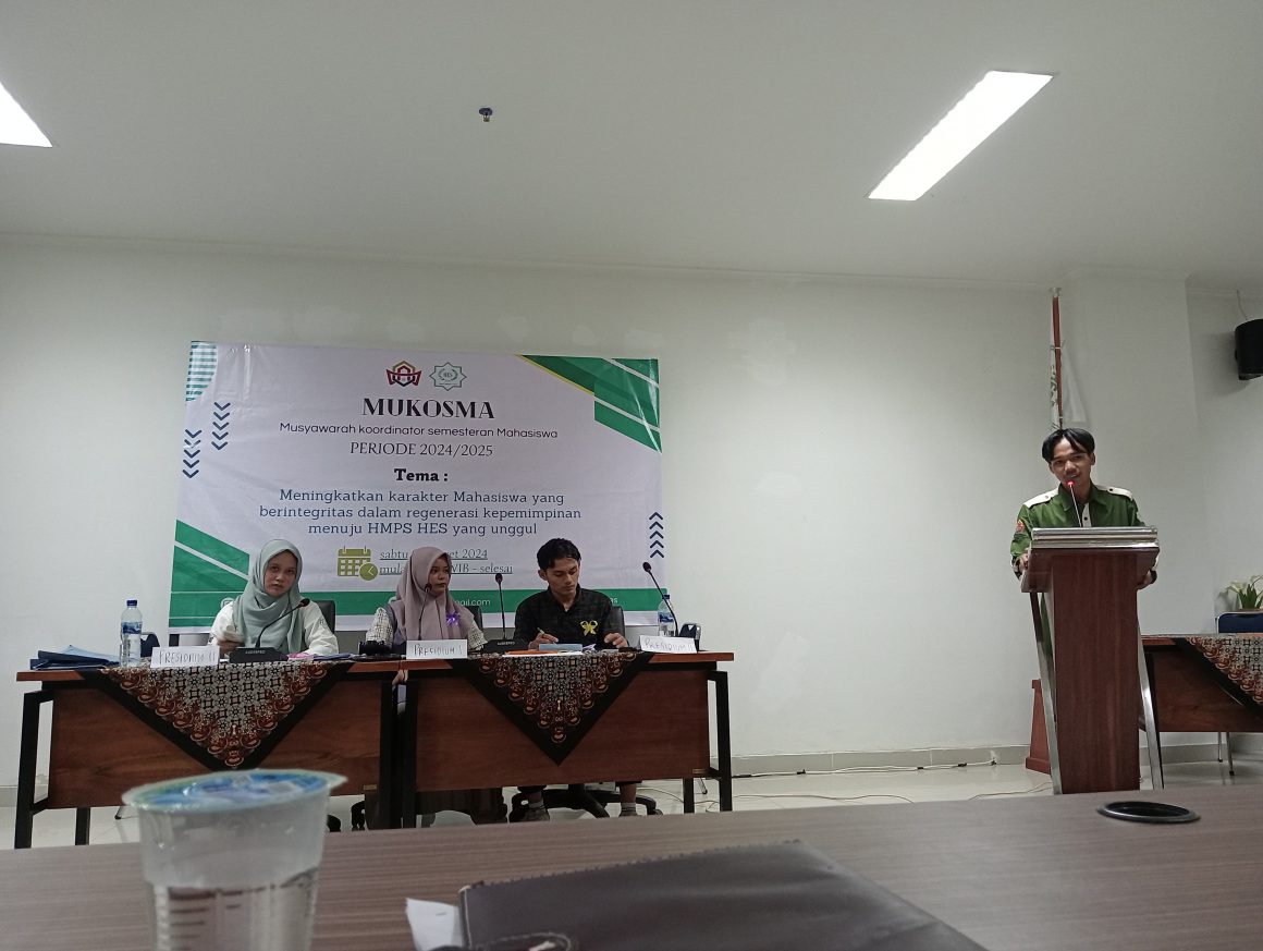 Selanjutnya, Perwakilan Ketua Umum HMPS HES, Fitri Rahmadani menyampaikan, MUKOSMA ini adalah program kerja terakhir pada periode ini. “Ini adalah ajang dimana pengurus mempertanggungjawabkan proker-proker selama masa pengurusan, serta melihat siapa yang layak yang bisa untuk melanjutkan kepengurusan berikutnya,” tegasnya.