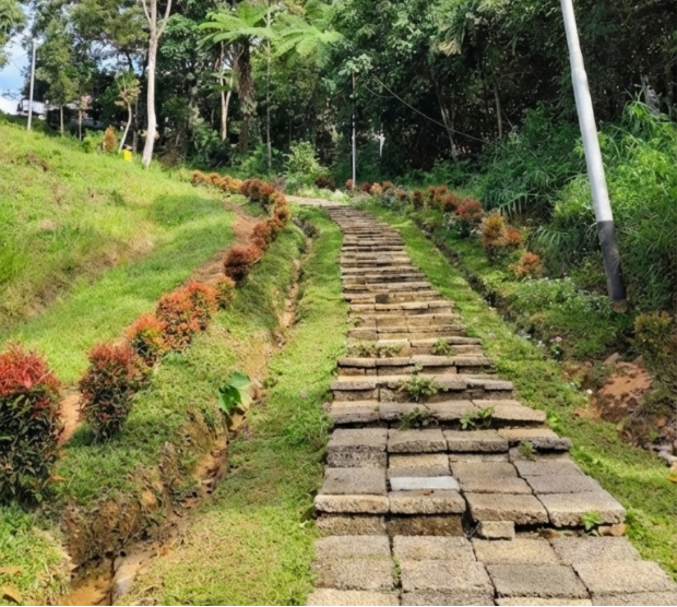 Tangga batu menuju goa yang dikelilingi pepohonan. (Sumber: Verlandi/suarakampus.com)