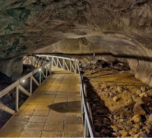 Interior goa dengan jalur jembatan kayu dan penerangan. (Sumber: Verlandi/suarakampus.com)