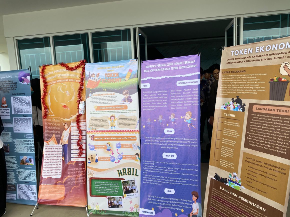 Suarakampus.com- Mahasiswa Program Studi Psikologi Islam angkatan 22 kelas C, D, dan E gelar pameran guna memenuhi tugas mata kuliah Modifikasi Perilaku. Pameran tersebut diadakan di teras Gedung Psikologi, Kampus III UIN IB Padang, Rabu (26/06).