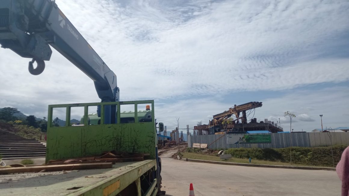 Suasana pengerjaan proyek pembangunan Kampus III UIN IB yang belum rampung (Foto: Manisma/suarakampus.com)