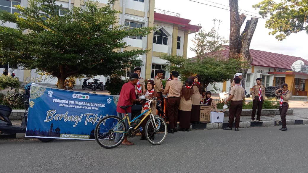 Suarakampus.com- Unit Kegaiatan Mahasiswa (UKM) Pramuka adakan bagi-bagi takjil. Pembagian takjil tersebut berlangsung selama dua hari, hari pertama di kampus II UIN Imam Bonjol dan hari kedua di luar kampus.